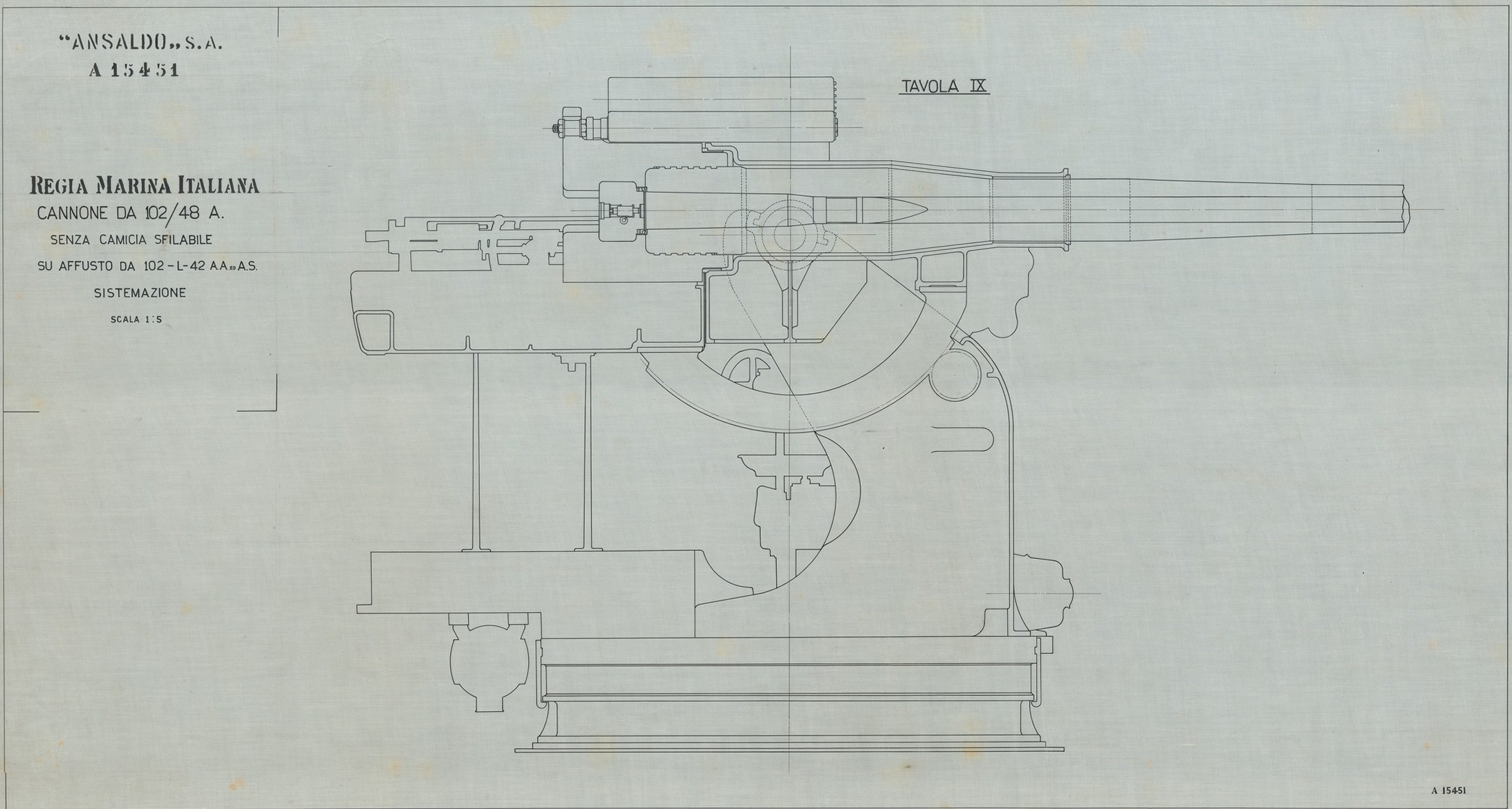 Cannone da 102/42 - insieme del cannone navale antiaereo