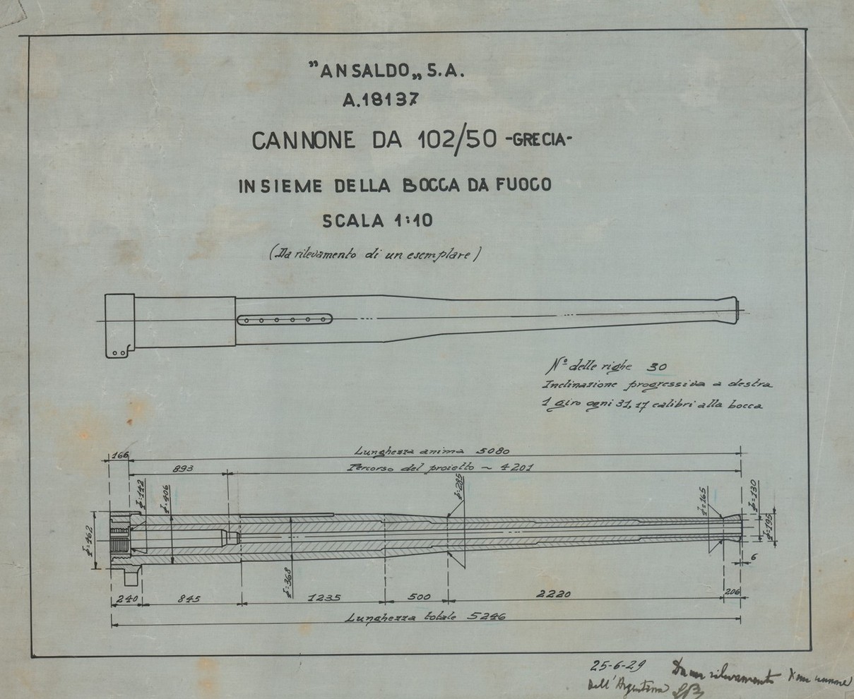 Cannone da 102/35 S.A. 1915 - sezioni diverse