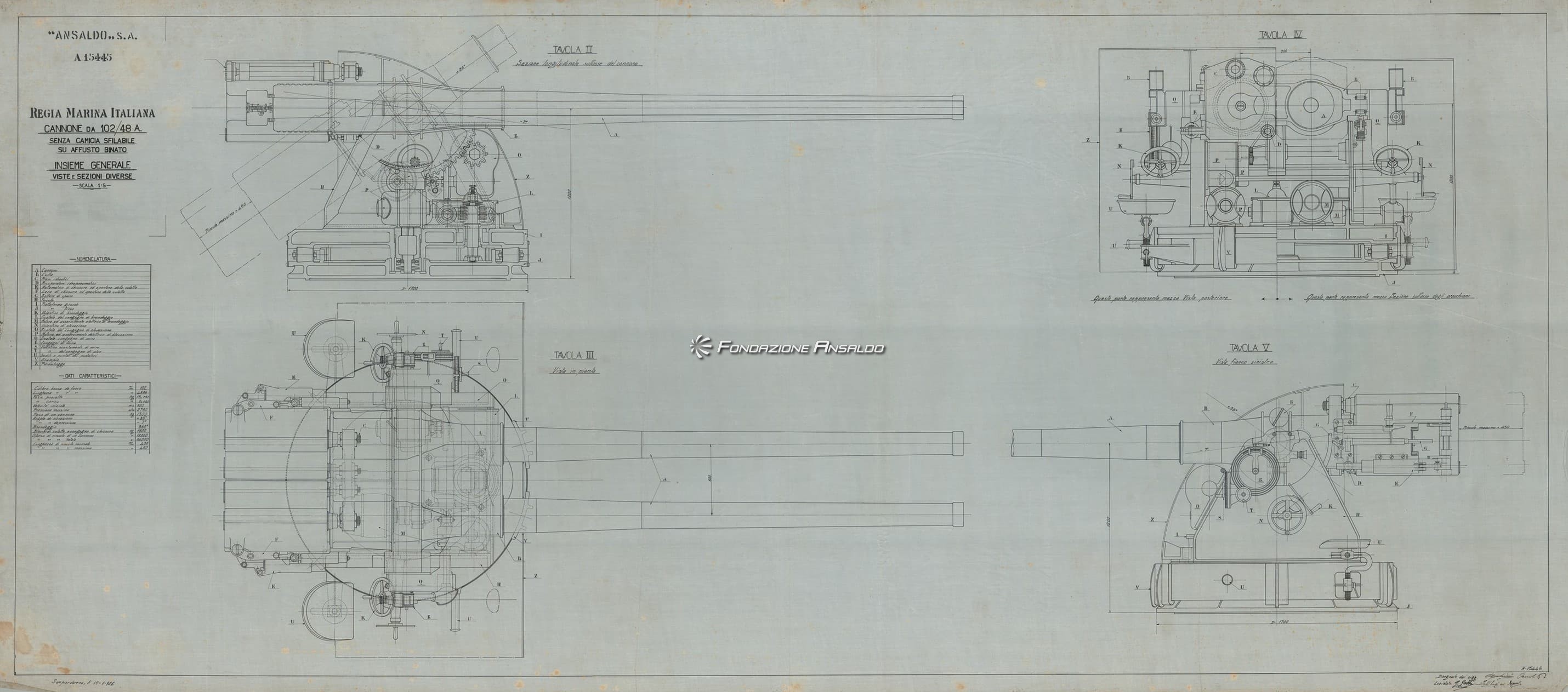 Cannone da 102/48 - Insieme generale viste e sezioni