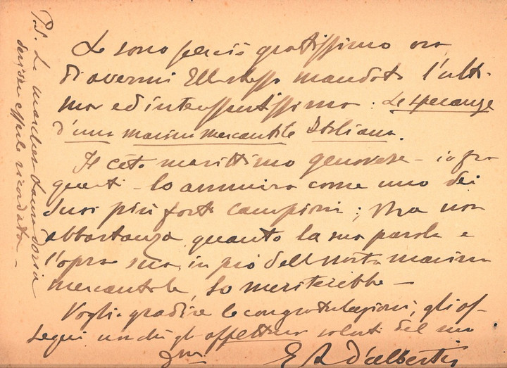 Biglietto del capitano Enrico Alberto D'Albertis, 12-10-1909 (2)